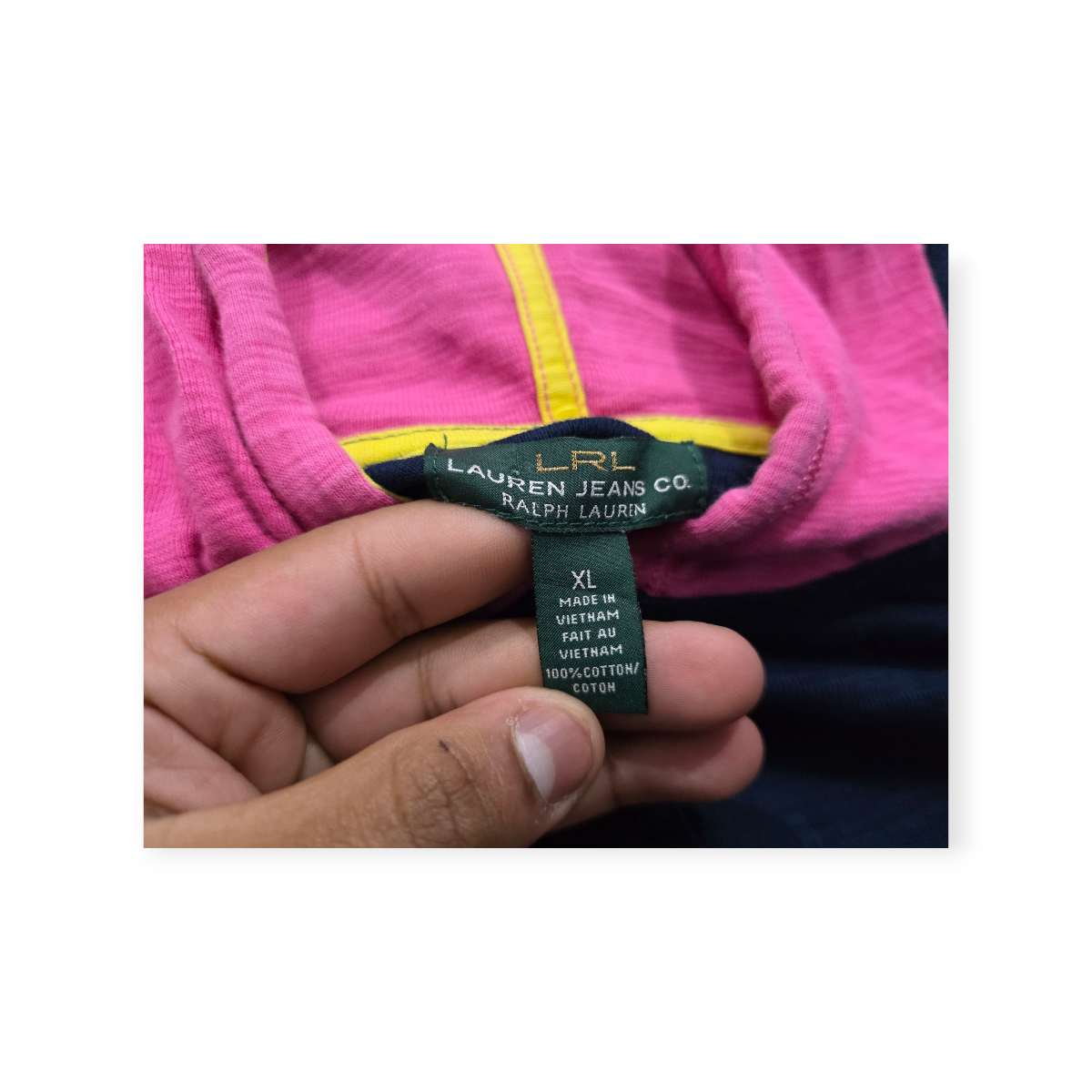 Playera Con Gorro Ralph Lauren Xl Rosa Con Azul Manga 3/4