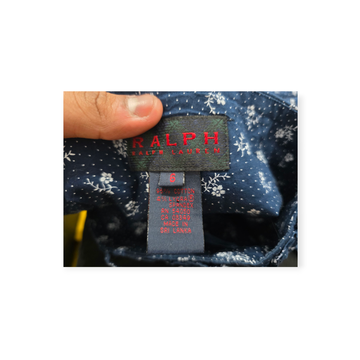 Vestido Ralph Lauren 6 Azul Con Flores Blancas D Tirantes
