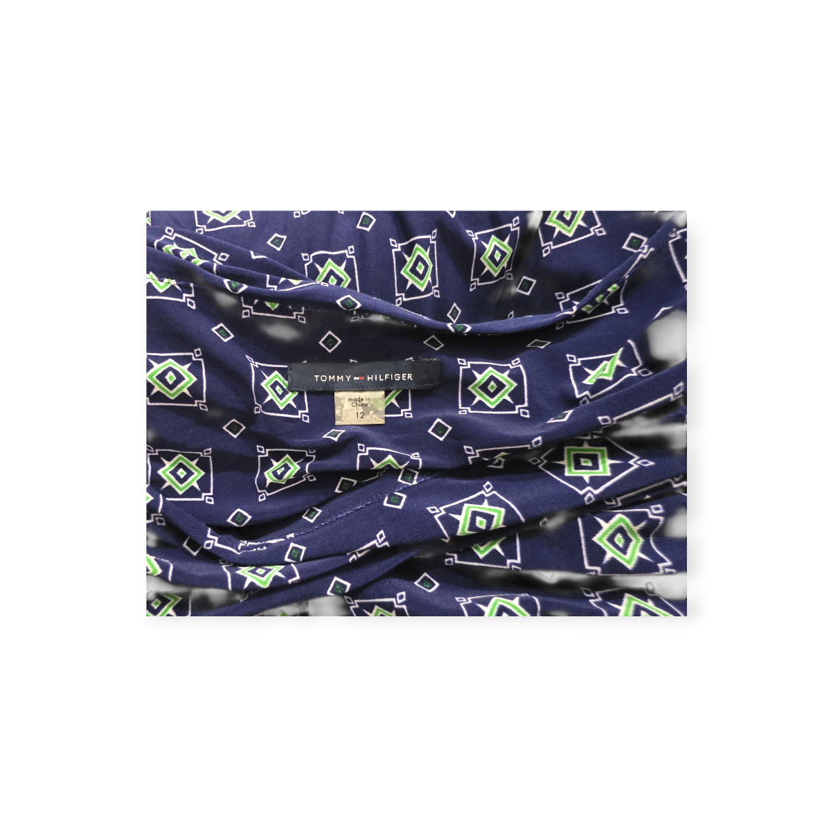 Vestido Tommy Hilfiger Talla 12 Azul Marino Y Verde Manga3/4